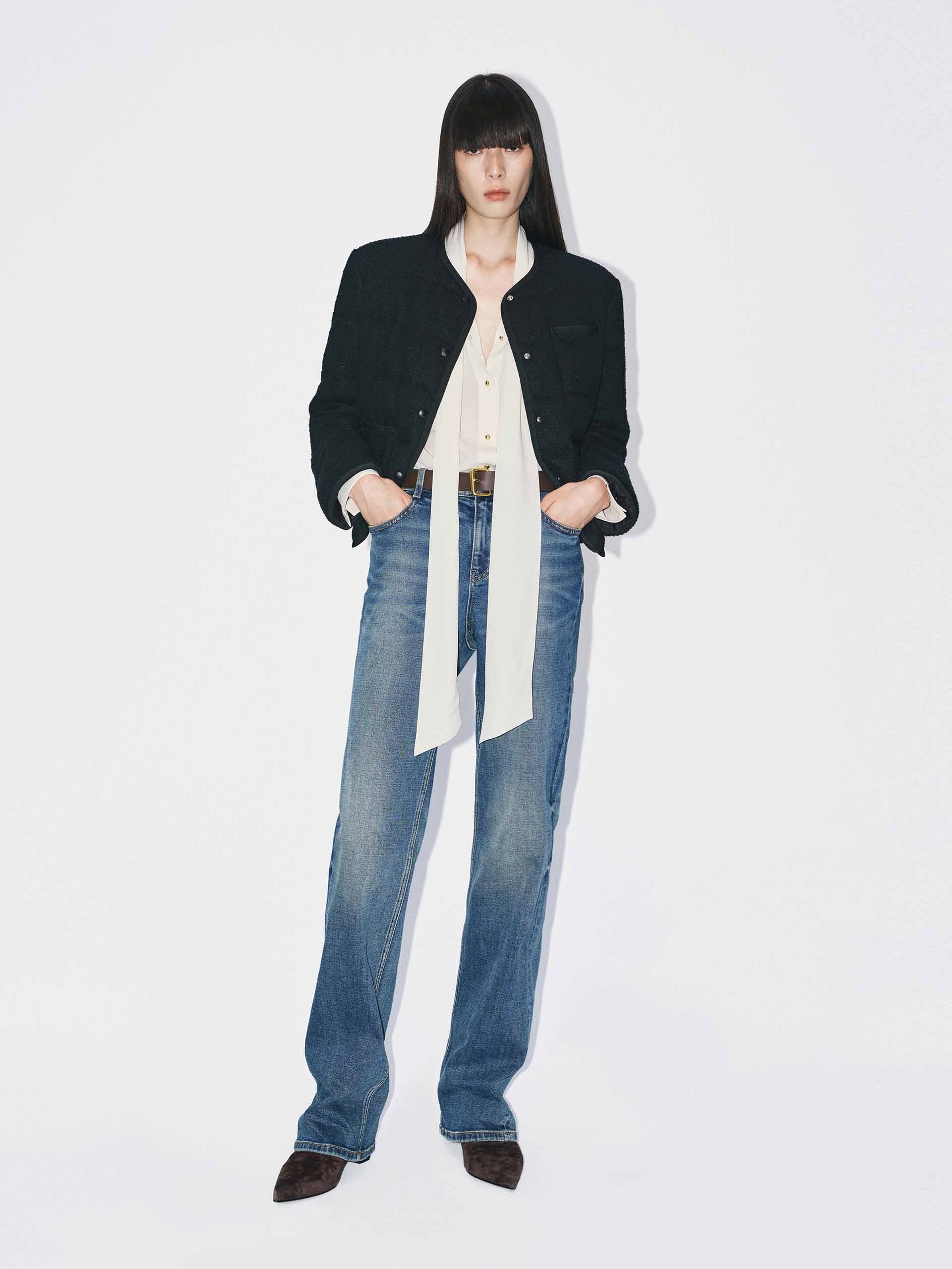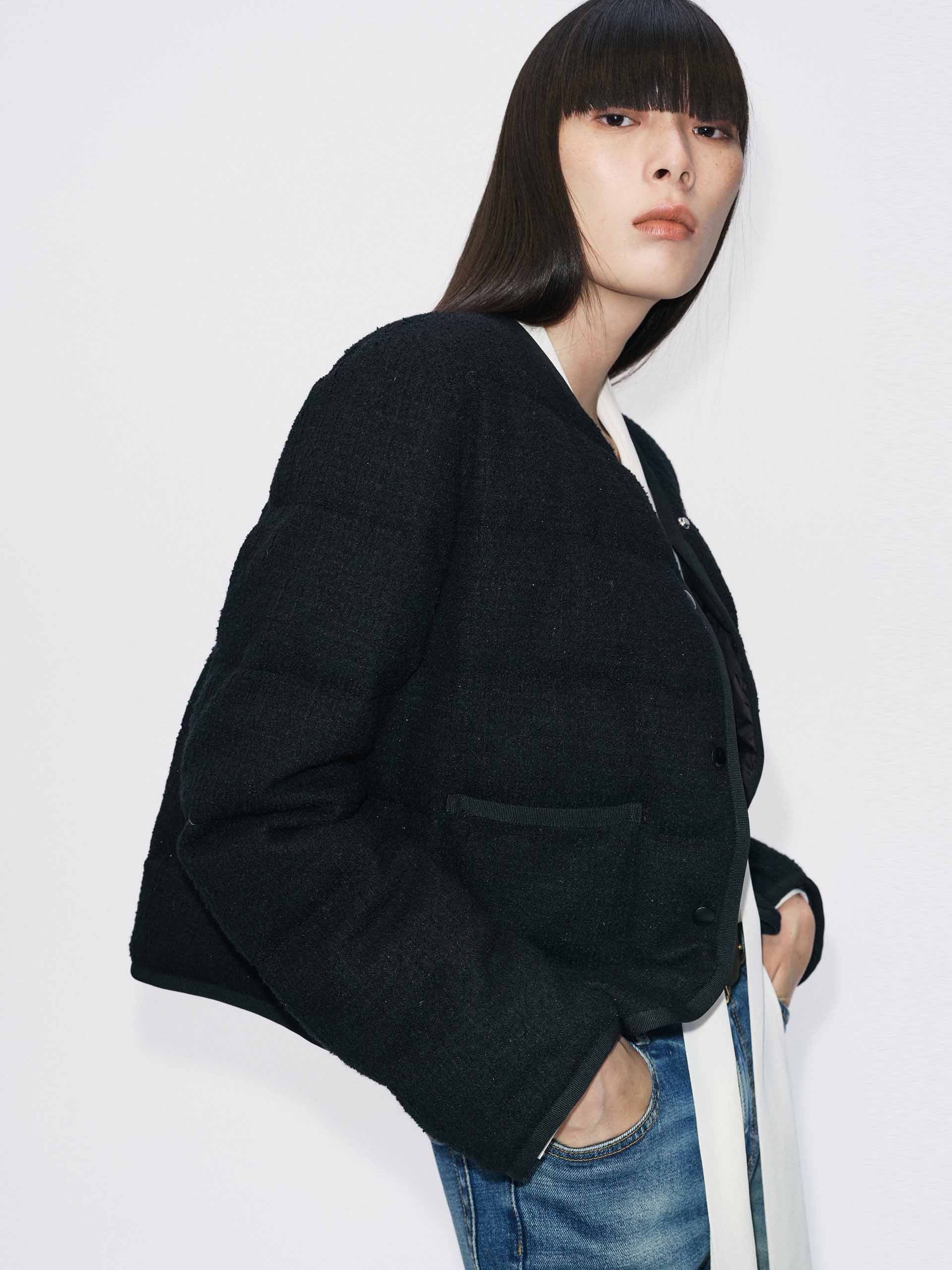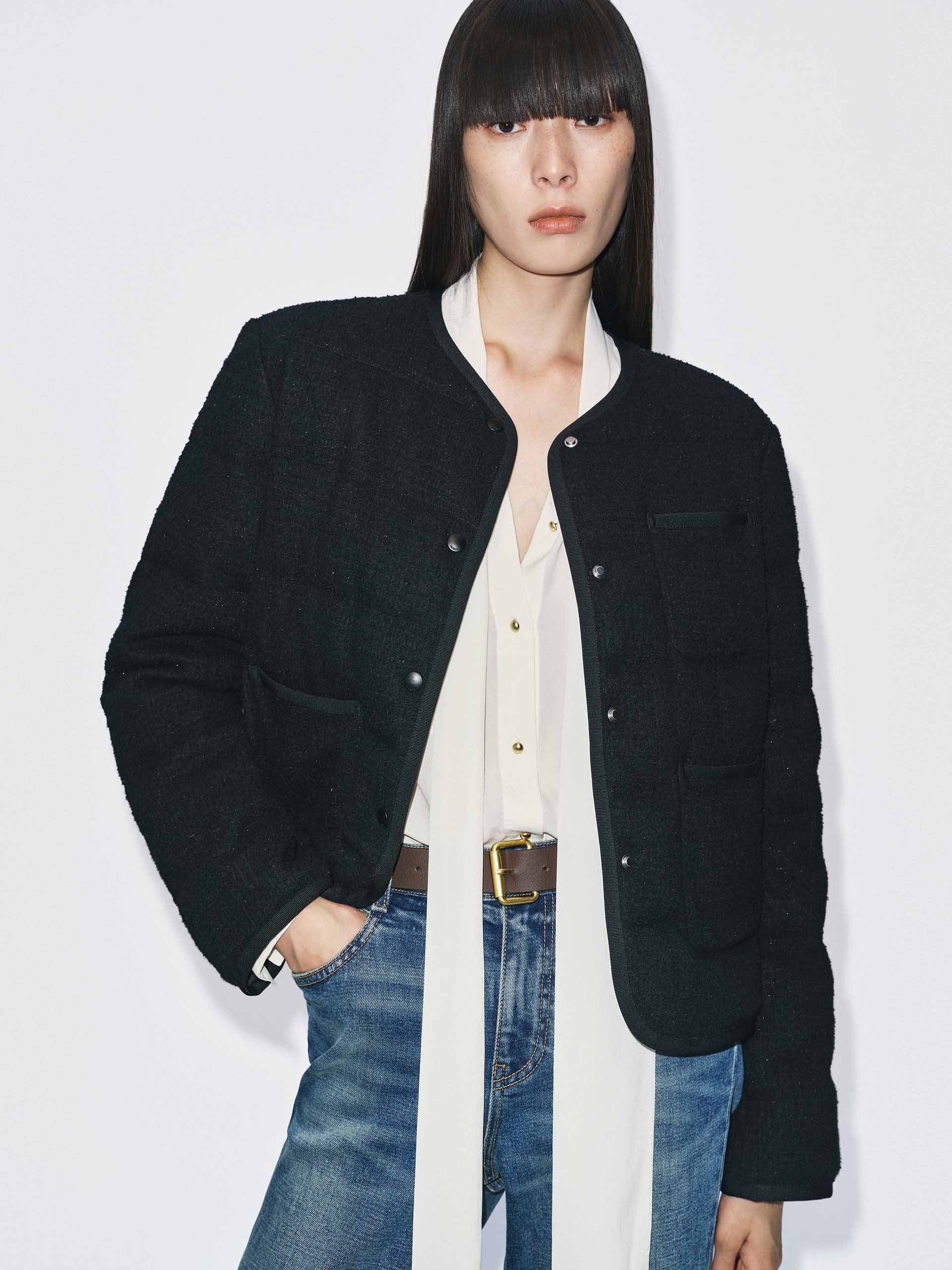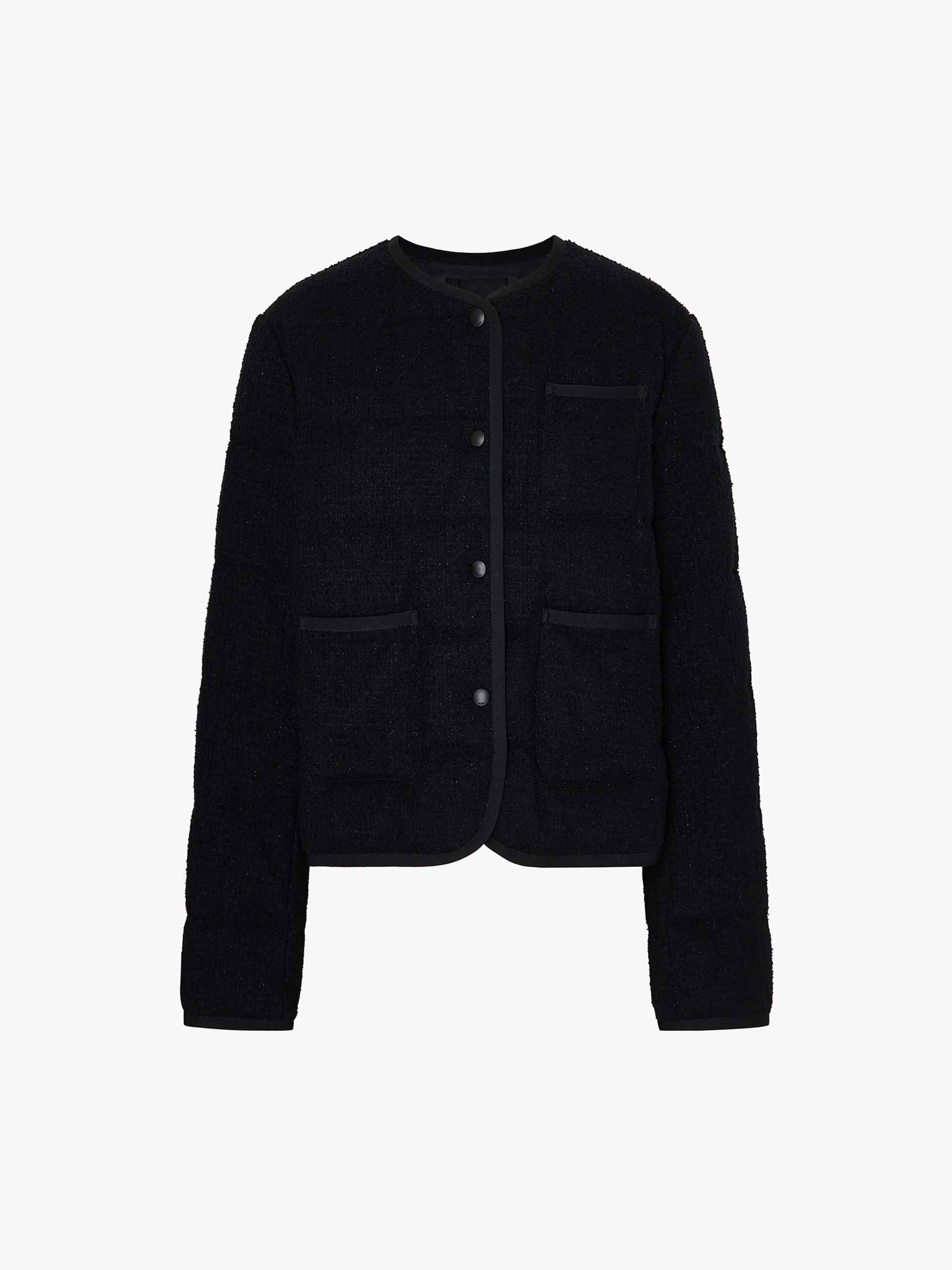 擁抱這款羽絨夾克的現代極簡美學。乾淨的無領領口和實用的貼袋增強了其流線型的實用吸引力。採用安全的按扣閉合,並由奢華柔軟的羊毛混紡面料製成,這件單品提供了剪裁精緻與舒適、輕盈溫暖的獨特組合。