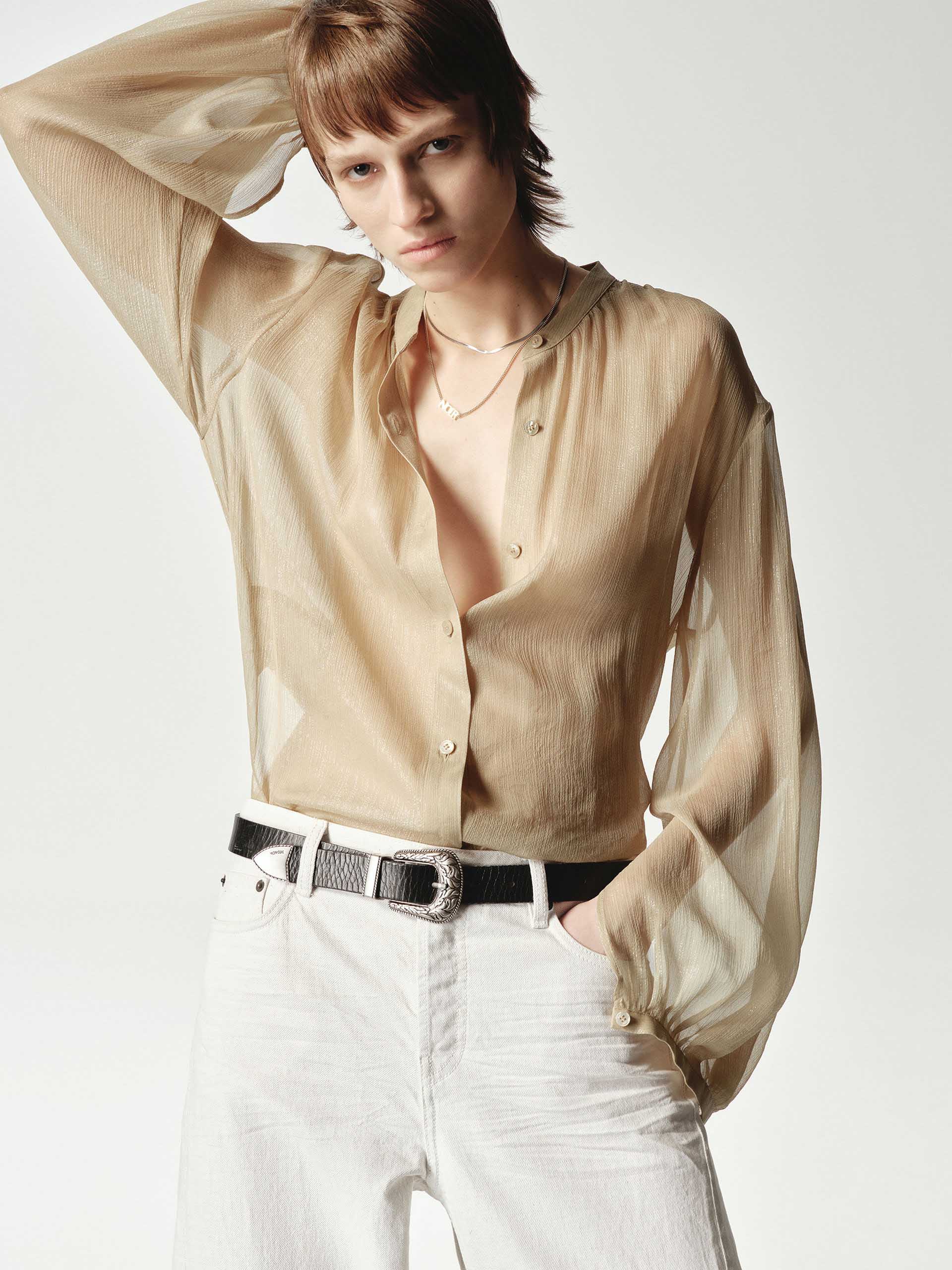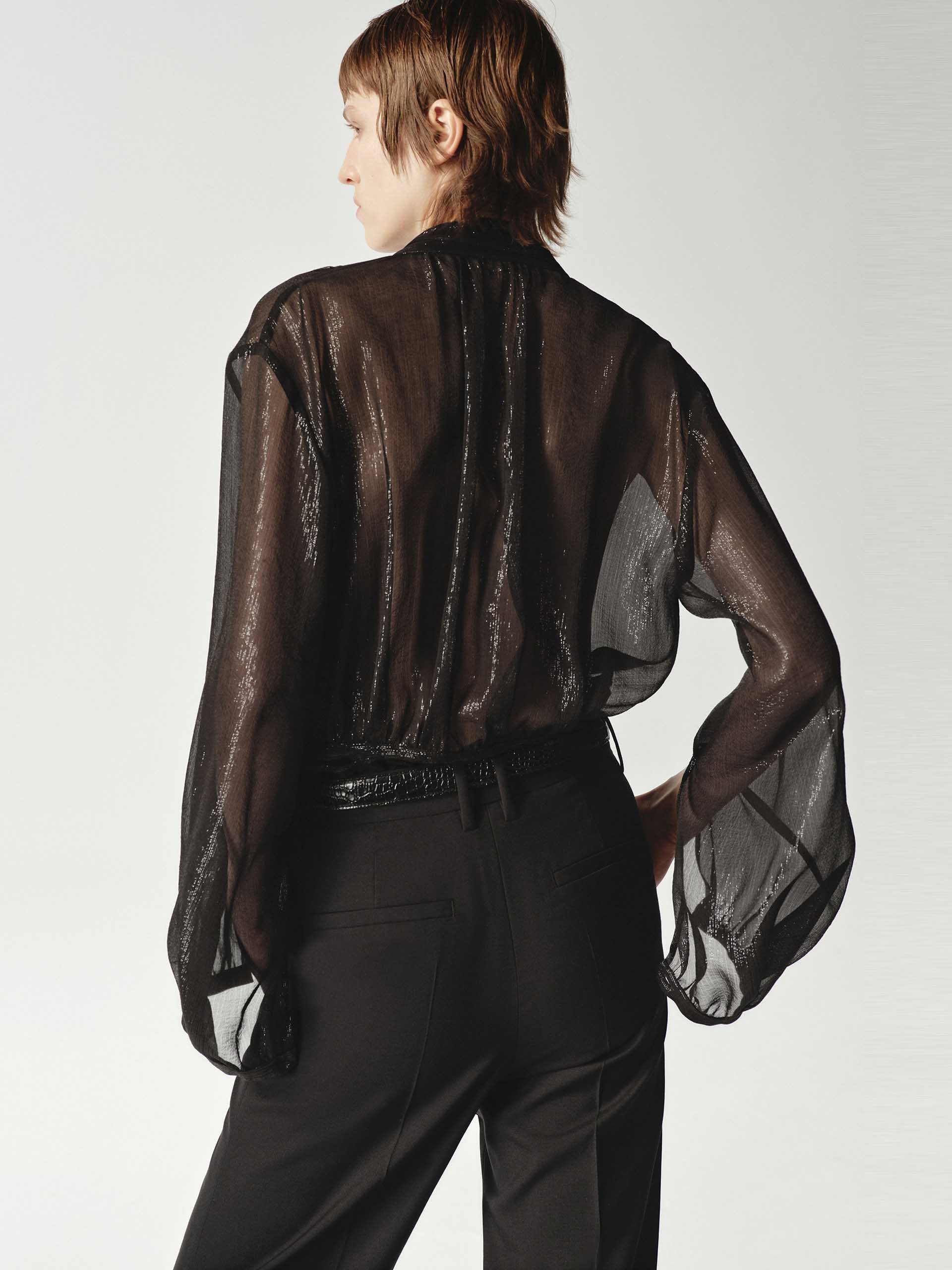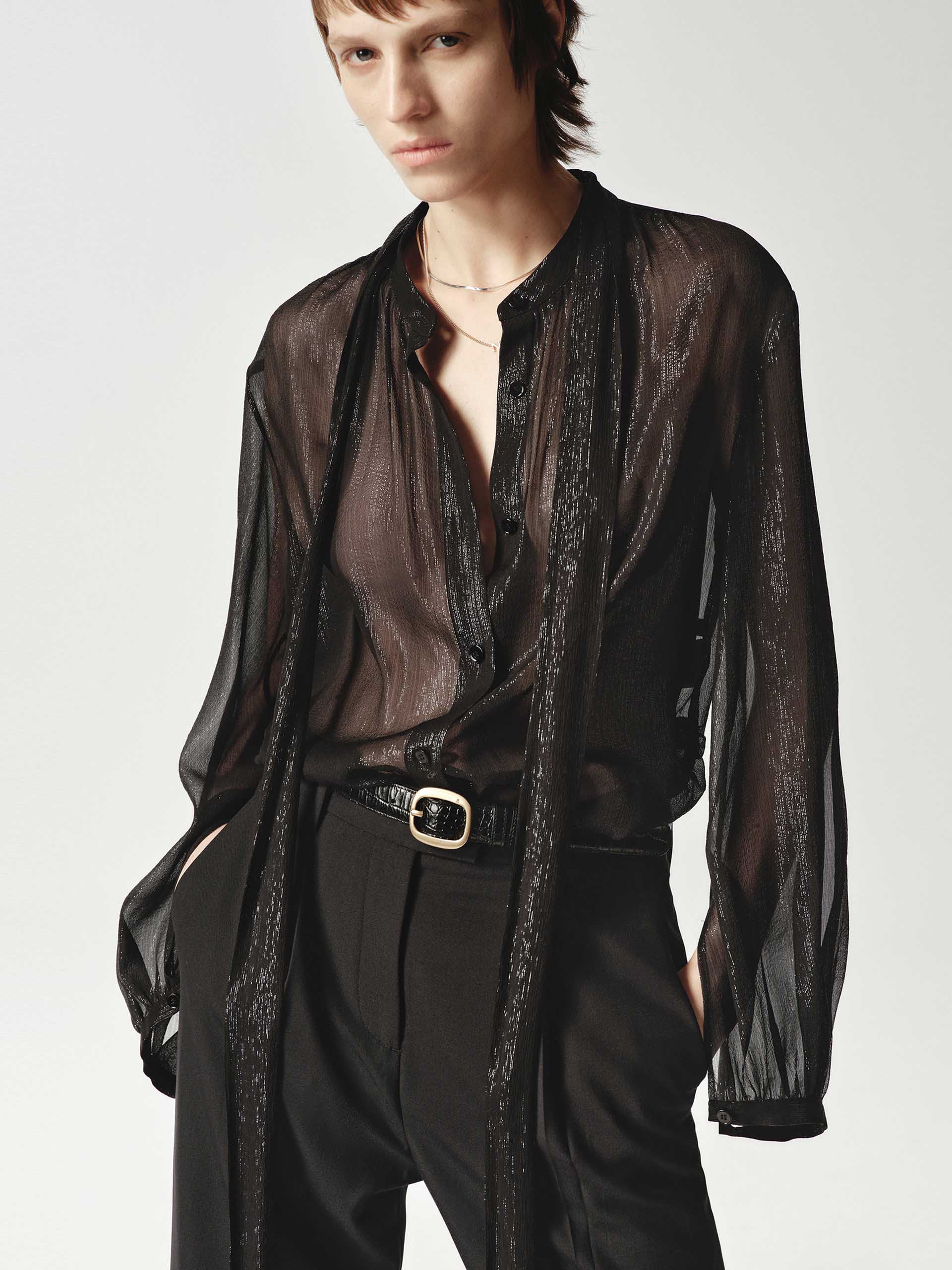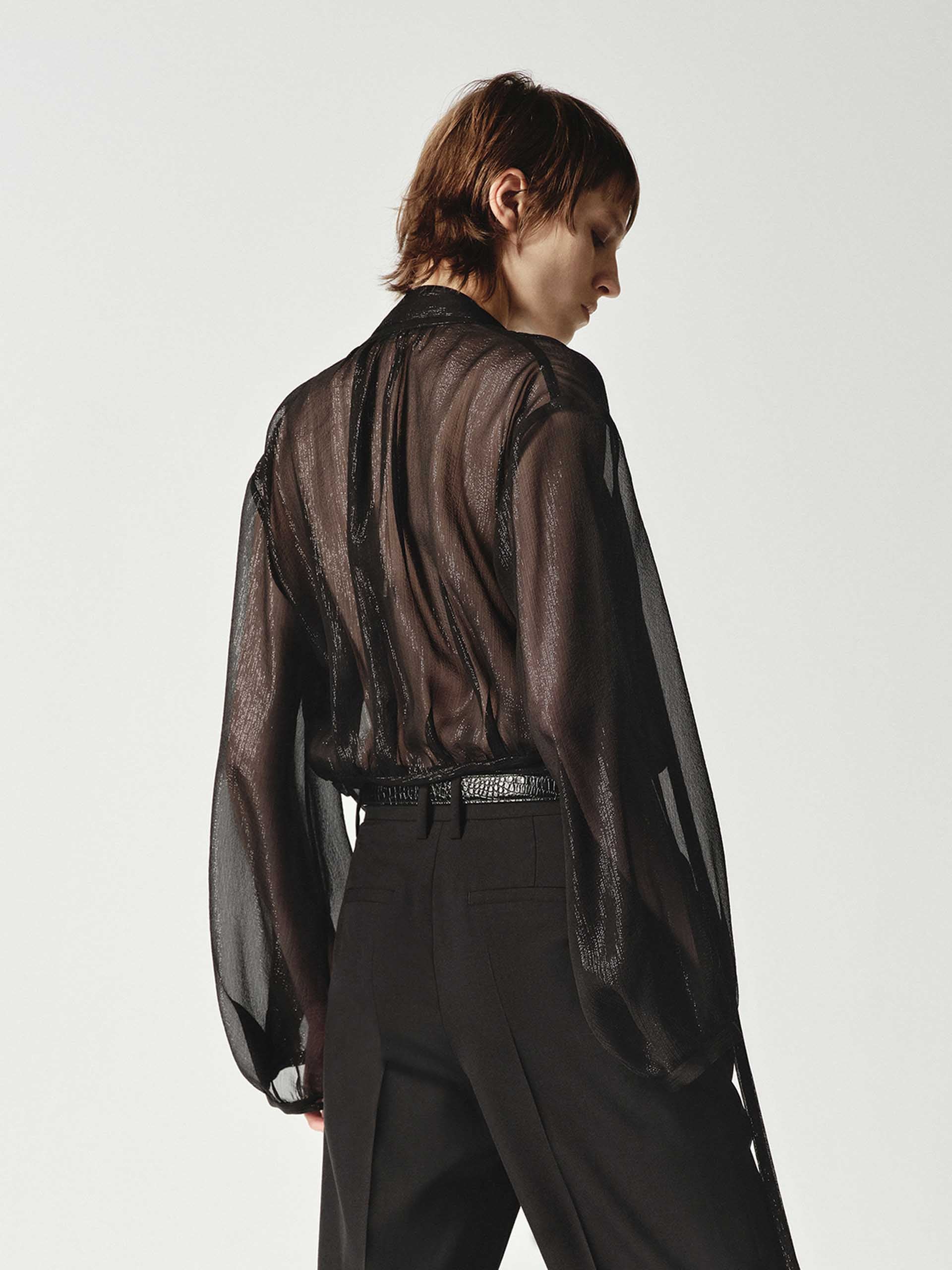 MO&Co. 女裝絲質混紗透膚繫帶上衣